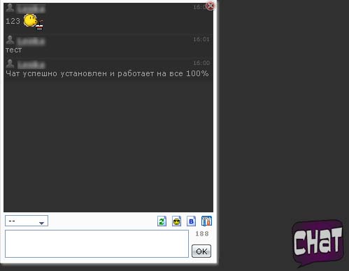 Мини-чат скрипт для uCoz, который установить можно за 1 минуту, так же этот скрипт подойдёт на любой сайт с любой тематикой и впишется в любой, даже самый капризный дизайн! Что делает скрипт? Он устанавливает мини чат в самый низ в правую сторону сайта и при нажатие на картинку ЧАТ , появится окошки с чатом! Теперь пользователи могут общаться там, но в тоже время он не будет мoзолить глаза тем, кому он вовсе не нужен. Устанавливаем: Установка: #1 заходим на сайт и в админ панель #2 Открываем Дизайн - Управление Дизайном Сайта #3 Переходим в GLOBAL_BFOOTER или просто Нижнюю часть сайта #4 Устанавливаем код в самый низ сайта и ГОТОВО! Код <style> .chat_box {display:none;position:fixed;bottom:15px;right:15px;border:1px solid #dddddd;background:#fbfbfb;padding:4px;-moz-border